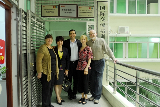 骆校长首先代表我校对代表团一行的来访表示热烈欢迎,并向代表团一行介绍了我校近百年的历史以及近年来的发展状况,同时还介绍了我校雅思考点的发展历史及现有规模等情况。