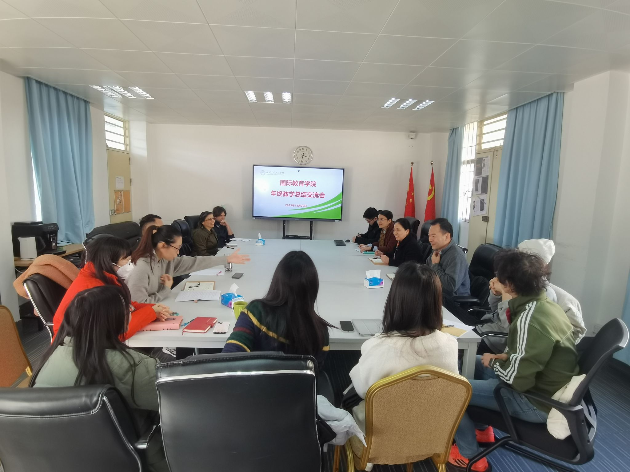 为更好地总结经验,推动新一年教学发展,12月20日下午,yl23411永利集团在30栋304会议室召开年终教学总结交流会。学院领导班子、中、外教教师、国际教育科、培训科和办公室相关人员参加了交流会。