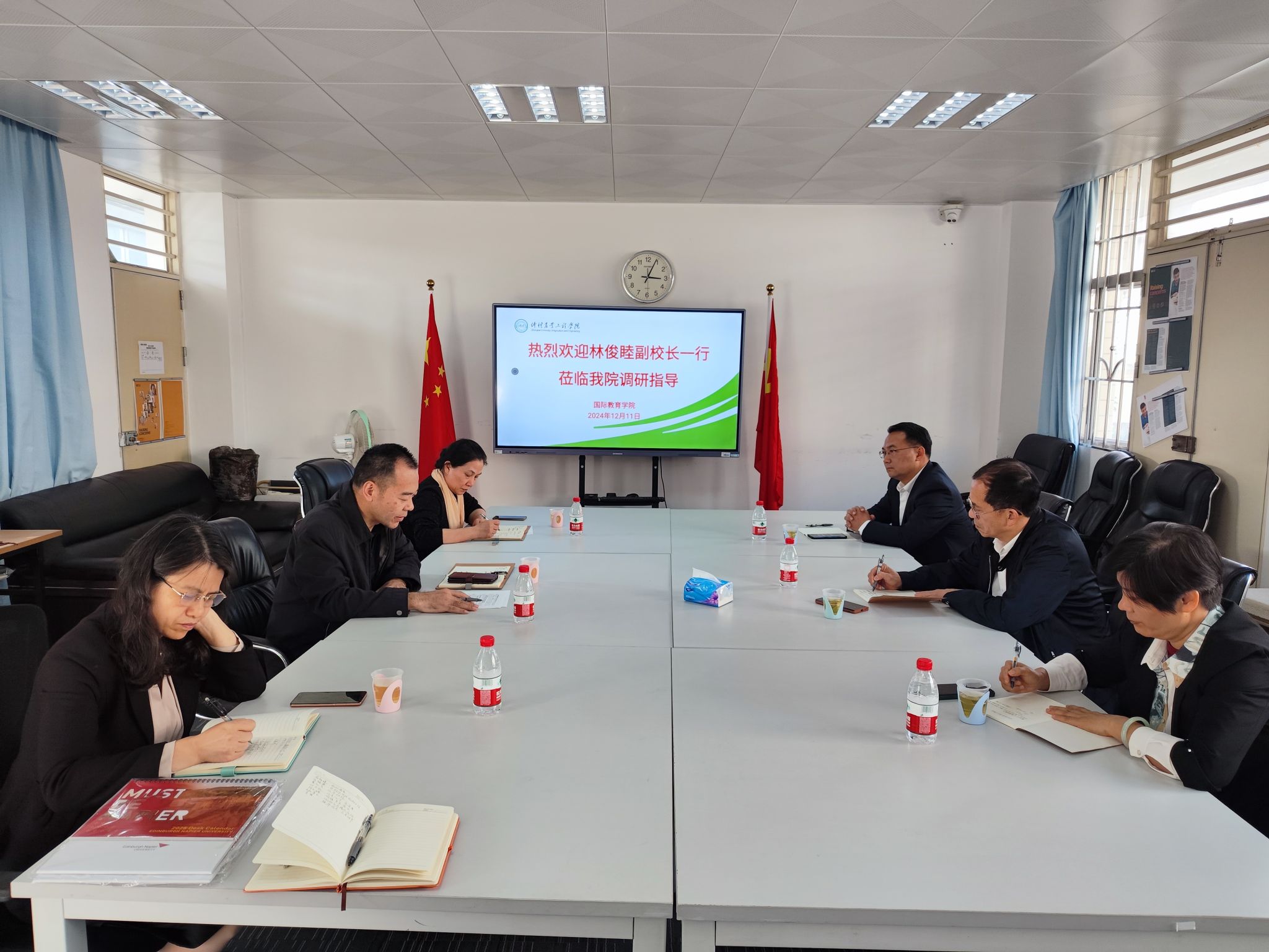 yl23411永利集团党总支书记昌灯圣代表学院汇报了学院的意识形态工作情况。林俊睦副校长听完汇报后,对学院认真做好意识形态各项工作表示肯定,对学院今后相关工作给出了指导性意见。他提出意识形态工作是党的一项极端重要的工作,应紧密围绕学院的中心工作,强化思想引领,确保学院的各项工作始终沿着正确的政治方向前进。他强调要做好以下几点:一是提高站位,加强理论学习,提高师生的政治觉悟和思想认识;二是做好国际班学生国外学习期间的管理工作;三是做好党组织建设工作,发挥党组织战斗堡垒作用。