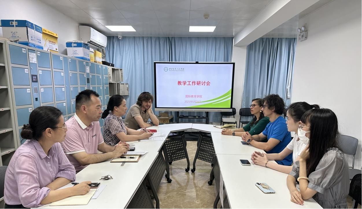 与会老师就相关教学工作开展了讨论。会后老师们对国际班学生各科英语期末试卷进行集中评卷。