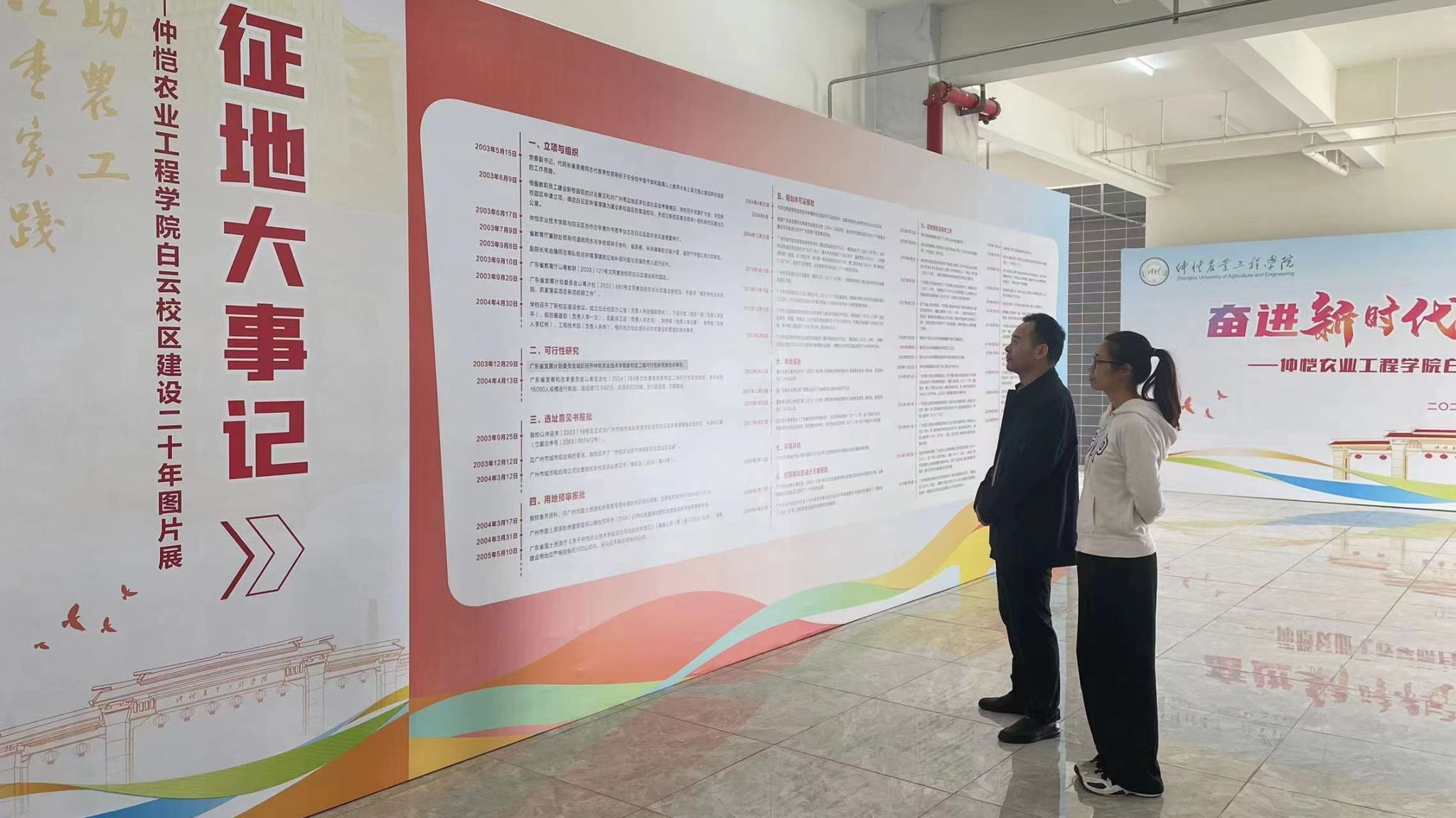白云校区建设20年图片展聚焦白云校区20年建设历程,以图片、图表数据等形式记录白云校区的建设点滴,体现仲恺人踔厉奋发的鲜活形象,是爱校荣校教育的优秀教材。