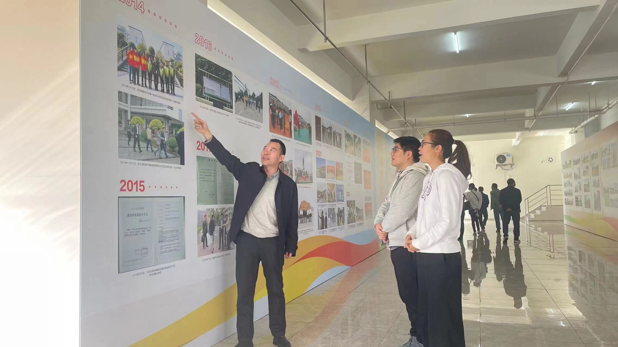 国际教育学院教工党支部于2024年1月18日开展主题党日活动,组织支部成员参观学校白云校区建设20年图片展。