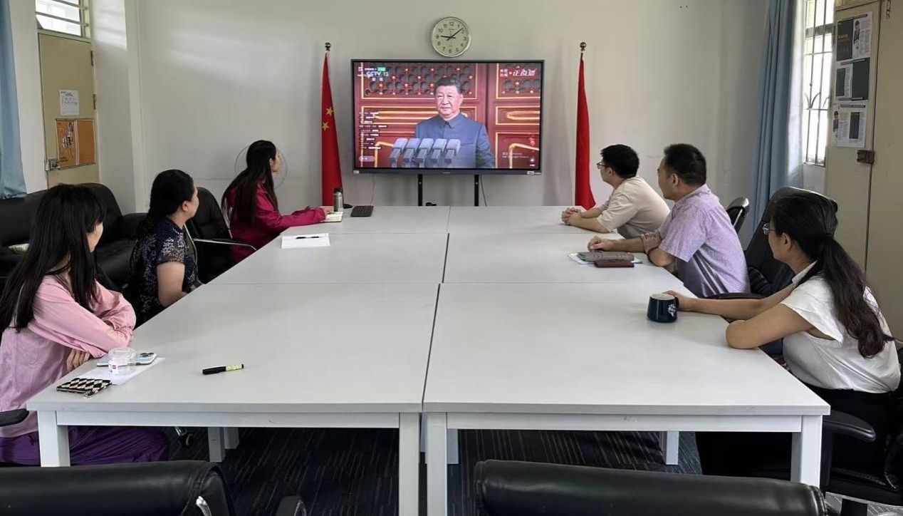 上午9时整,纪念中国人民抗日战争暨世界反法西斯战争胜利80周年阅兵仪式正式开始,与会人员全程观看阅兵活动,隔着屏幕与全国人民共唱国歌。这场阅兵,带来的不仅是一次国力震撼,更是一次跨越时空的承诺。80年来,中国的变化沧海桑田、翻天覆地。在中国共产党的坚强领导下,中国人民创造了“两大奇迹”,成功开辟了中国特色社会主义道路,开创了中国特色社会主义新时代,中华民族迎来了从站起来、富起来到强起来的伟大飞跃,实现中华民族伟大复兴进入了不可逆转的历史进程。一代人有一代人的使命,一代人有一代人的担当。革命先烈为新中国的诞生献出生命,我们要弘扬先烈的英勇献身精神,为建设新时代中国特色社会主义事业添砖加瓦。作为从事国际教育工作的教育工作者,要肩负起引导学生讲好中国故事、传播好中国声音的重任,更要牢记为党育人、为国育才的初心使命。